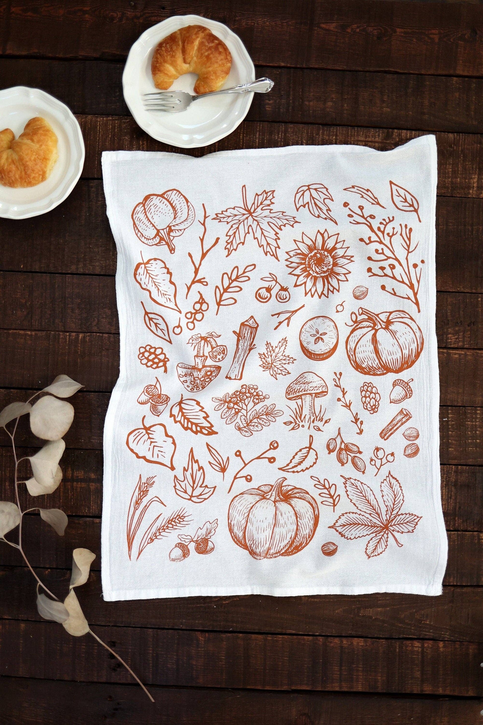 This fall tea towel adds that perfect soft touch to your kitchen, while still working hard! These are the perfect size to fold and display in a table setting or hanging over your oven. They are medium weight and lint-free so this beautiful tea towel works as a delicate napkin or as an absorbent clean-up cloth. (YES, they are *absorbent!*).