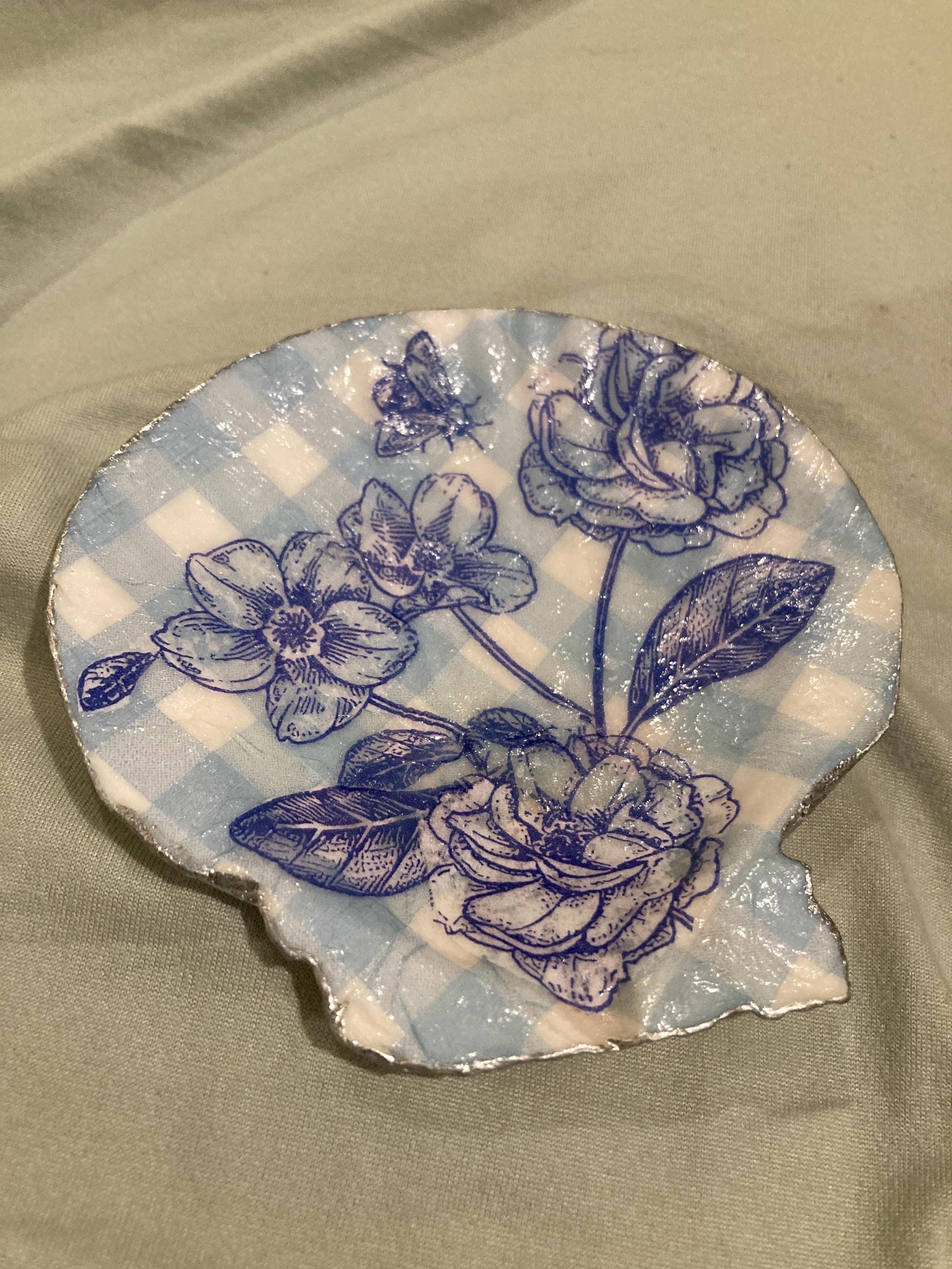You’re a busy bee and we applaud you for all you do. This blue and off-white ring dish with blue plaid pattern is the perfect gift for the woman who embodies Proverbs 31.