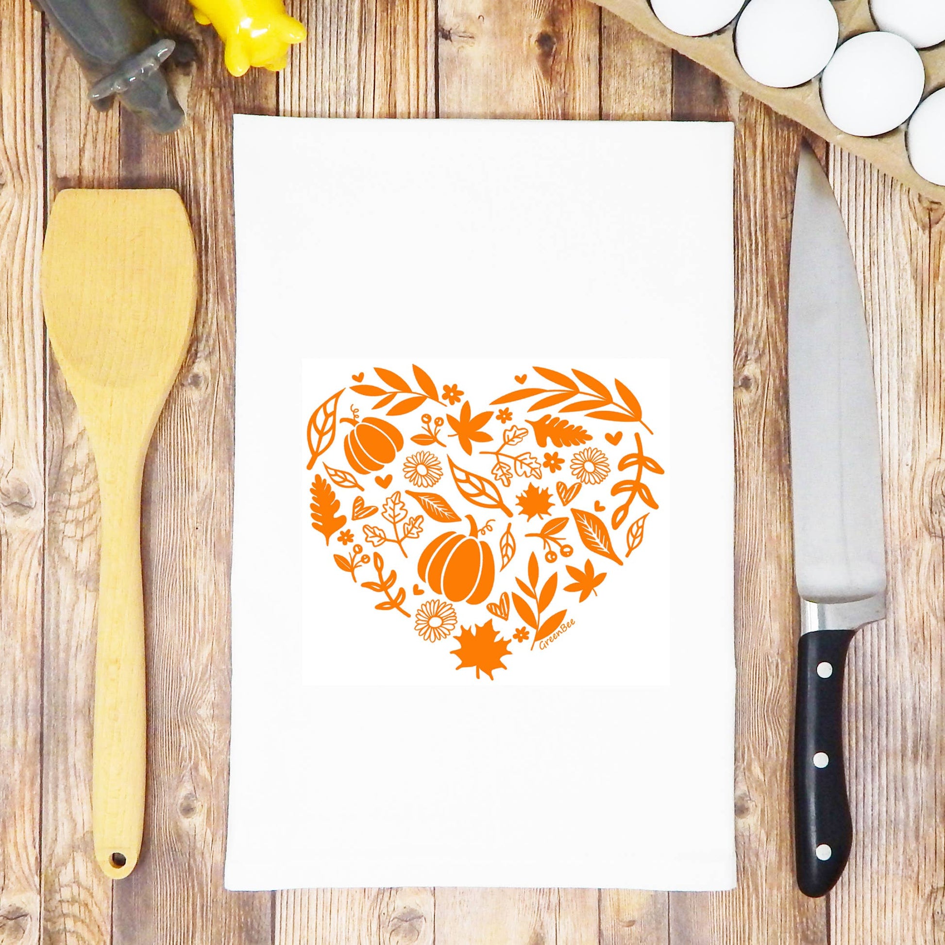Pumpkin Heart Kitchen Towel | Tea Towels | Fall Dish Towels